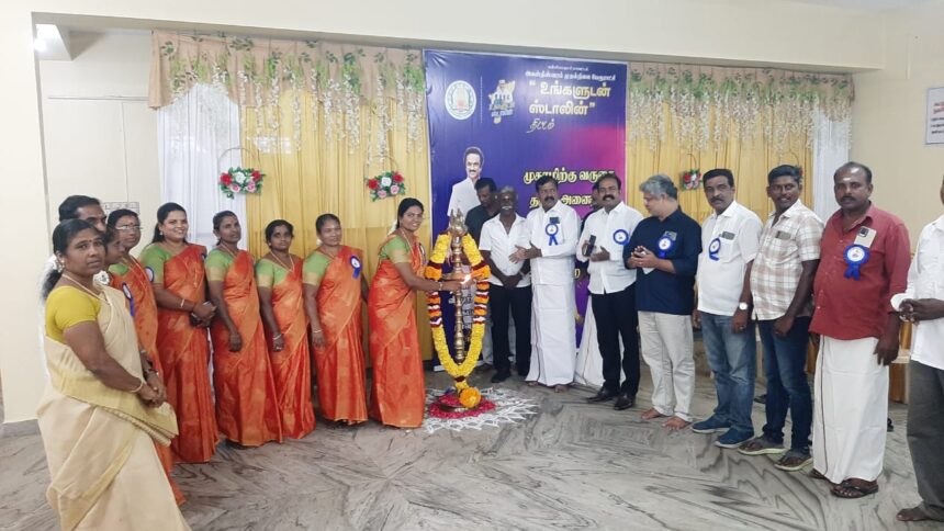 உங்களுடன் ஸ்டாலின் திட்ட முகாம் அகஸ்தீஸ்வரம் பேரூராட்சிக்கு உட்பட்ட குலசேகர விநாயகர் திருமண மஹாலில் நேற்று தொடங்கி இன்று வரை இரண்டு நாட்கள் நடைபெறுகிறது. இத்திட்டத்தின் முக்கிய நோக்கம் பொதுமக்கள் தங்களின் குறைகள், கோரிக்கைகள், தேவைகள் மற்றும் நலத்திட்ட உதவிகளை ஒரே இடத்தில் பெறுவதற்கு ஏற்ற வகையில் நேற்று அகஸ்தீஸ்வரம் பேரூராட்சிக்குட்பட்ட பகுதியைச் சேர்ந்த பொதுமக்கள் கலந்து கொண்டு பயனடையும் வகையில் அகஸ்தீஸ்வரம் பேரூராட்சிக்கு உட்பட்ட குலசேகர விநாயகர் திருமண மண்டபத்தில் நடைபெற்றது. நிகழ்ச்சியை பேரூராட்சி தலைவி அன்பரசி ராமராஜன் தலைமை தாங்கி குத்துவிளக்கேற்றி முகாமை தொடங்கி வைத்தார்.