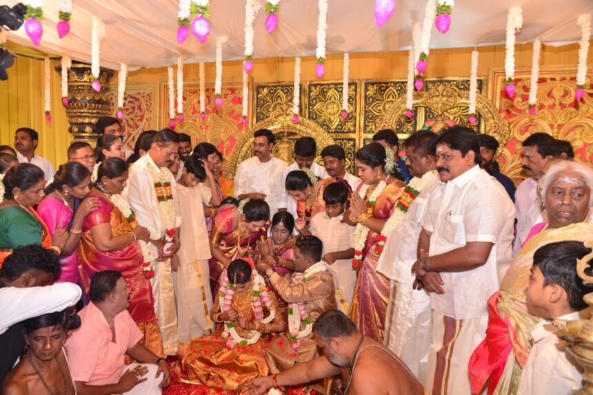 ராமநாதபுரம் பாலாஜி குரூப் ஆப் கம்பெனி உரிமையாளர் சசிகுமார் அதிமுக மாவட்ட கழக இணை செயலாளர் வழக்கறிஞர் கவிதா இல்ல திருமண விழா வெகு விமர்சையாக நடைபெற்றது. அதிமுக பொதுச் செயலாளர் தமிழக சட்டமன்ற எதிர்க்கட்சித் தலைவர் முன்னாள் முதல்வர் எடப்பாடியார் நல்லாசியுடன் ராமநாதபுரம் வண்டிக்கார தெரு அதிமுக முன்னாள் மாவட்ட அவை தலைவர் முருகேசன் அன்னக்கிளி நாச்சியார் மகன் வழி பேரனும் ராமநாதபுரம் மறவர் தெரு பொறியாளர் நாராயணசாமி கமலாதேவி மகள் வழி பேரனும் பாலாஜி குரூப் ஆப் கம்பெனி உரிமையாளர் சசிகுமார். அதிமுக மாவட்டக் கழக இணைச் செயலாளர் ராமநாதபுரம் நகராட்சி முன்னாள் தலைவர் வழக்கறிஞர் கவிதா இவர்களது மகன் பாலாஜி குரூப் ஆஃப் கம்பெனியின் நிர்வாக இயக்குனர் பொறியாளர் ஹர்ஷத் நாராயணன் என்ற மணமகனுக்கும் தேனி மாவட்டம் உப்பார்பட்டி துரைசாமி பார்வதி அம்மாள் மகன் வழி பேத்தியும் திருப்புவனம் கணக்கன்குடி நல்லுட்டியான் பெரியம்மாள் மகள் வழி பேத்தியும் மருதநாயகம் என்ற ராஜா ஜெயசுந்தரி இவர்களது மகள் பொறியாளர் சௌமியா என்ற மணமகளுக்கும் திருமணம் இன்று காலை ராமநாதபுரம் கேணிக்கரை யாபா மஹாலில் காலை 9 மணிக்கு மேல் 10.30 மணிக்குள் கோலாகலமாக நடைபெற்றது.