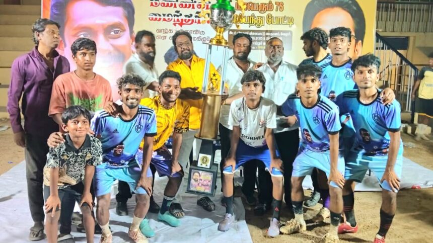 இப்போட்டியில் மாவட்டத்தில் பல்வேறு பகுதிகளில் இருந்து கால்பந்து விளையாட்டு குழுவினர் கலந்து கொண்டனர். முதல் பரிசாக ரூபாய் 50,000 இரண்டாவது பரிசாக ரூபாய் 30,000 மூன்றாவது பரிசாக ரூபாய் 20,000 நான்காம் பரிசாக ரூபாய் பத்தாயிரம் மற்றும் ஐந்து ஆறு ஏழு எட்டாவது பரிசாக தலா 3000 என மொத்தம் ரூபாய் ஒரு லட்சத்து 22,000 பரிசுத்தொகை வழங்கப்பட்டது.