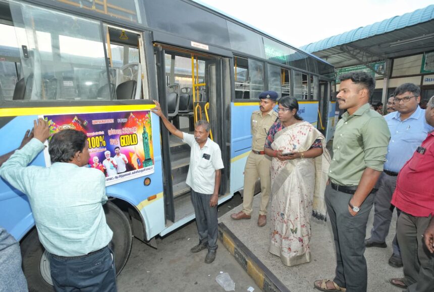 Reading: அரசு பஸ்சில் எல்இடி திரையில் தேர்தல் விழிப்புணர்வு வாசகம்: கலெக்டர், எஸ்பி துவக்கி வைத்தனர்