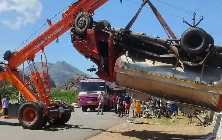நெல்லையிலிருந்து திருவனந்தபுரத்திற்கு நேற்று காலை பால் லோடு ஏற்றிக்கொண்டு லாரி ஒன்று சென்று கொண்டிருந்தது. இந்த லாரி குமரி மாவட்டம் ஆரல்வாய்மொழியில் இருந்து பூதப்பாண்டி செல்லும் சாலையில் உப்பாத்து ஓடை மேல் கட்டப்பட்டுள்ள மரப்பாலத்தில் சென்றபோது திடீரென டிரைவரின் கட்டுப்பாட்டை இழந்து ஓடியது. ஒரு கட்டத்தில் லாரி பாலத்தின் பக்கவாட்டு சுவர் இடித்துக் கொண்டு கண்ணிமைக்கும் நேரத்தில் 50 அடி ஆழமான ஓடைக்குள் பாய்ந்து தலைகுப்புற கவிழ்ந்தது. இதில் டிரைவர் காயமடைந்து சம்பவ இடத்திலேயே உயிரிழந்தார்.