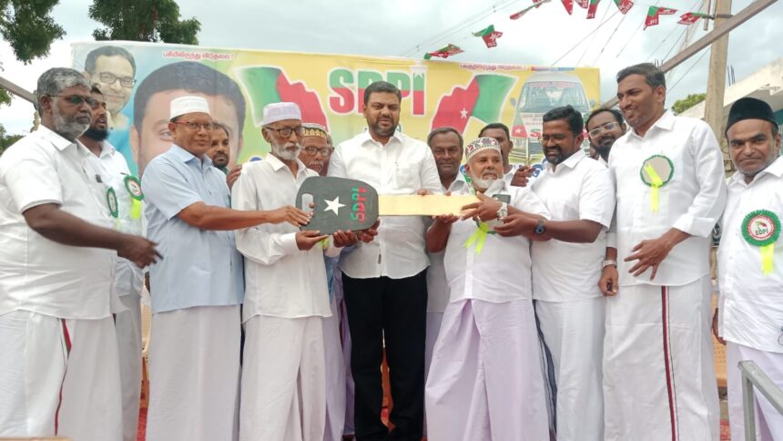 ராமநாதபுரம் மாவட்டம் உச்சிப்புளி அருகே இருமேனி கிராமத்தில் எஸ்டிபிஐ கட்சி சார்பில் ஆம்புலன்ஸ் அர்ப்பணிப்பு விழா மற்றும் பொதுக்கூட்டம் நடைபெற்றது. ராமநாதபுரம் மாவட்டம் உச்சிப்புளி அருகே இருமேனியில் அனைத்து சமுதாய மக்களின் பயன்பாட்டிற்காக எஸ்டிபிஐ கட்சி சார்பில் ஆம்புலன்ஸ் அர்ப்பணிப்பு விழா வெகு சிறப்பாக நடைபெற்றது. எஸ்டிபிஐ கட்சியின் ராமநாதபுரம் கிழக்கு மாவட்ட செயற்குழு உறுப்பினர் நவ்வர்ஷா தலைமை வகித்தார். கிழக்கு கிளைத் தலைவர் அகமது சரிபு கனி வரவேற்புரை ஆற்றினார். கிழக்கு மாவட்ட தலைவர் ரியாஸ்கான் துவக்க உரையாற்றினார். மேற்கு மாவட்ட தலைவர் நூருல் அமீன் வாழ்த்துரை வழங்கினார். எஸ்டிபிஐ கட்சியின் மாநிலத் தலைவர் நெல்லை முபாரக் சிறப்பு அழைப்பாளராக கலந்து கொண்டு ஆம்புலன்ஸ் அர்ப்பணிப்பு செய்து சிறப்புரை ஆற்றினார்.
