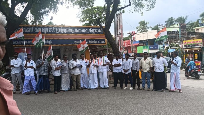 ஆர்ப்பாட்டத்தில் வர்த்தக காங்கிரஸ் குமரி கிழக்கு மாவட்ட தலைவர் சிவகுமார், சிறுபான்மை பிரிவு மாவட்ட தலைவர் முகமது ராபி, இளைஞர் காங்கிரஸ் மாவட்ட தலைவர் ஜீவா, மாவட்ட துணை தலைவர் பிரபு, மாநகர மாவட்ட செயலாளர் மகேஷ், நாகர்கோவில் சட்ட மன்ற தொகுதி துணை தலைவர் மதன், கன்னியாகுமரி சட்டமன்ற தொகுதி பொதுச் செயலாளர் அபிசேக், பூதப்பாண்டி பேரூர் தலைவர் ஏசுராஜா ஜோயல் உள்பட ஏராளமானோர் கலந்து கொண்டனர்.
