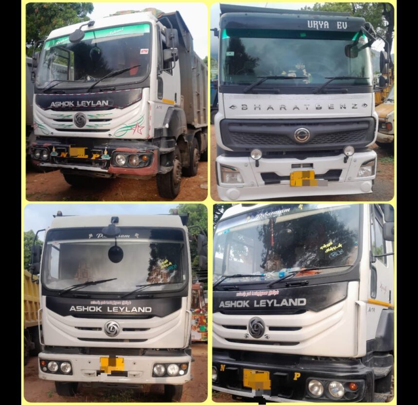 கன்னியாகுமரி மாவட்ட காவல் கண்காணிப்பாளர் உத்தரவின்படி மாவட்டம் முழுவதும் போலீசார் தீவிர வாகன சோதனையில் ஈடுபட்டு வருகின்றனர். இந்நிலையில் ஆரல்வாய்மொழி காவல் நிலைய எல்லைக்குட்பட்ட குமாரபுரம் சோதனை சாவடி அருகே போலீசார் வாகன சோதனையில் ஈடுபட்டுக் கொண்டிருந்தபோது போலியான நடைசீட்டு பயன்படுத்தி சட்ட விரோதமாக கனிமவளம் ஏற்றி வந்த நான்கு டாரஸ் லாரிகள் பறிமுதல் செய்யப்பட்டது.