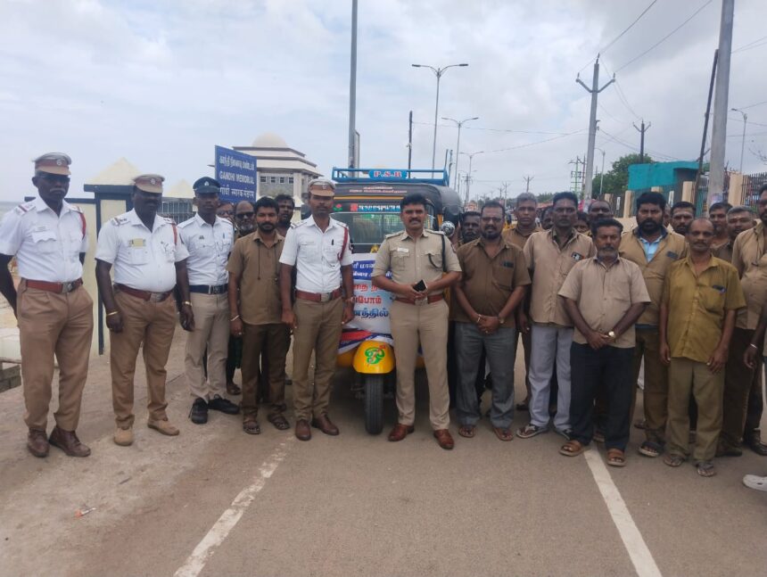கன்னியாகுமரி டி.எஸ்.பி. மகேஷ் குமார் பொதுமக்களுக்கு போதைப்பொருள் பயன்படுத்துவதால் ஏற்படும் தீமைகள் குறித்த விழிப்புணர்வு, விபத்துக்கள் குறித்த விழிப்புணர்வு போன்ற விழிப்புணர்வு பேரணிகள் மற்றும் போதைப் பொருட்கள் பயன்படுத்துவதால் ஏற்படும் தீமைகள் குறித்த செய்திகளை கல்லூரி, பள்ளிகளுக்கு நேரடியாக சென்று மாணவ மாணவிகளிடம் விழிப்புணர்வை ஏற்படுத்தி வருகின்றார். அதுபோல பள்ளி, கல்லூரி அருகே உள்ள பெட்டிக்கடைகளுக்கும் அடிக்கடி சென்று போதைப் பொருட்கள் ஏதும் விற்பனை செய்யப்படுகின்றதா என்பதையும் ஆய்வு செய்து வருகின்றார். இந்நிலையில் நேற்று காலை கன்னியாகுமரி காந்தி மண்டபம் அருகே கன்னியாகுமரி டி.எஸ்.பி. மகேஷ் குமார் தலைமையில் விபத்து இல்லா மாவட்ட திட்டத்தின் கீழ் விழிப்புணர்வு நிகழ்ச்சி நடத்தப்பட்டது. இதில் 50-க்கும் மேற்பட்ட ஆட்டோ ஓட்டுநர்கள் பங்கேற்று சீட் பெல்ட் அணிவோம்; செல்போன் தவிர்ப்போம்; போதைப் பொருட்கள் மதுவை தவிர்ப்போம் என உறுதிமொழி எடுத்தனர். சாலை பாதுகாப்பை உணர்த்தும் விதத்தில் இந்த விழிப்புணர்வு நிகழ்ச்சி நடைபெற்றது. இதில் அப்பகுதியில் உள்ள ஆட்டோ ஓட்டுநர்கள் பொதுமக்களும் கலந்து கொண்டனர்.