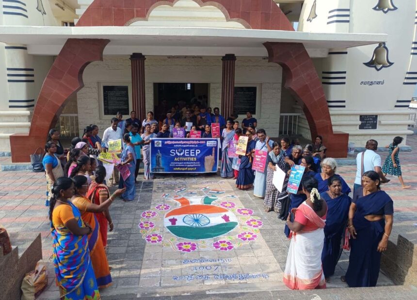 கன்னியாகுமரி காந்தி நினைவு மண்டபத்தில் கன்னியாகுமரி நகராட்சி சார்பில் அனைத்து வாக்காளர்களும் தங்கள் ஜனநாயக கடமையினை நிறைவேற்றிட வலியுறுத்தி விழிப்புணர்வு நிகழ்ச்சி நடைபெற்றது.