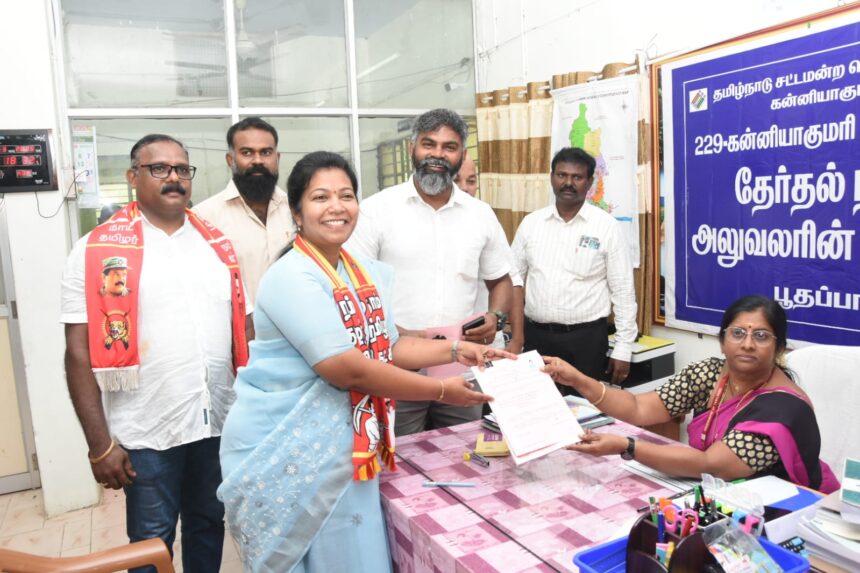 கன்னியாகுமரி சட்டமன்ற தொகுதி நாம் தமிழர் கட்சி வேட்பாளர் மரிய ஜெனிபர் வேட்பு மனு தாக்கல் செய்தார்