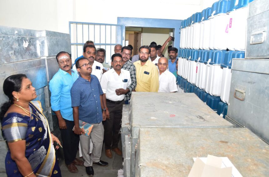 இதில் 900 வாக்குப்பதிவு இயந்திரங்கள் வரும் இன்று விருதுநகர் மாவட்டத்திற்கு அனுப்பி வைக்கும் பணியினை அங்கீகரிக்கப்பட்ட அரசியல் கட்சி பிரதிநிதிகள் முன்னிலையில் ஆய்வு மேற்கொள்ளப்பட்டது. மீதமுள்ள வாக்குப்பதிவு இயந்திரங்கள் முதல்கட்ட சரிபார்ப்பு பணிகள் அங்கீகரிக்கப்பட்ட அரசியல் கட்சி பிரதிநிதிகள் முன்னிலையில் இன்று (11.12.2025) நடைபெறவுள்ளது என கூறினார்.