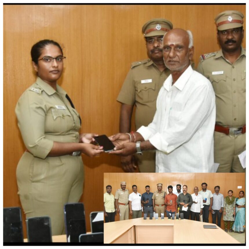 ராணிப்பேட்டை மாவட்டம் காவல் அலுவலகத்தில் மாவட்ட காவல் கண்காணிப்பாளர் கிரண் ஸ்ருதி தலைமையில் வாலாஜாபேட்டை காவல் நிலைய எல்லைக்குட்பட்ட பகுதியில் தொலைந்த /களவு போன 30 செல்போன்களை காவல் ஆய்வாளர் சாலமன் ராஜா தலைமையிலான போலீசார் மீட்டு அதன் உரிமையாளரிடம் ஒப்படைக்கப்பட்டது