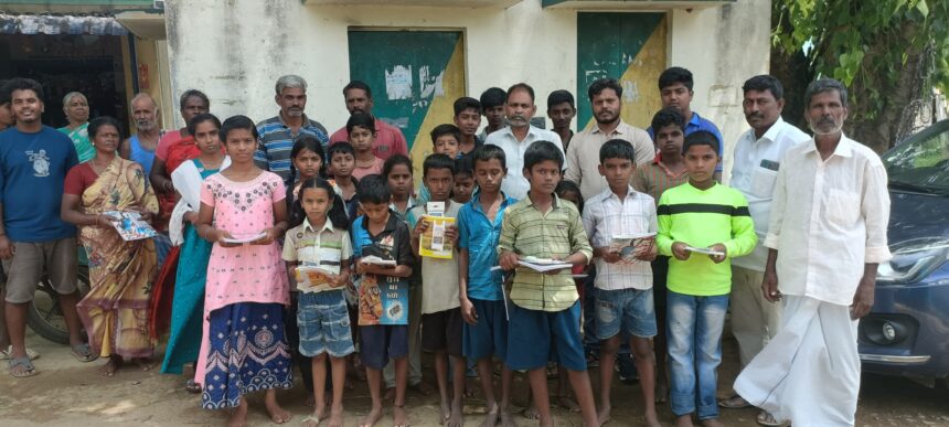 இந்த காமனூர்தட்டு மலைவாழ் மக்கள் சுமார் 60 க்கும் மேற்பட்ட மாணவர்களுக்கு நோட்டு புத்தகங்கள், பேனா, பென்சில் உள்ளிட்ட பொருட்கள் வன்னியர் மக்கள் கட்சி சார்பில் நேரடியாக சென்று வழங்கினர்.