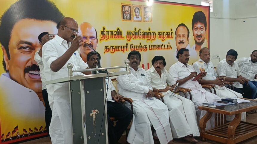 தருமபுரி மாவட்டம், காரிமங்கலத்தில் உள்ள கட்சி அலுவலகத்தில் திமுக மேற்கு மாவட்ட செயற்குழு கூட்டம் மாவட்ட அவைத் தலைவர் மனோகரன் தலைமையில் நடைபெற்றது.