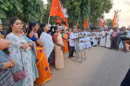 தக்கலையில் கோவில் நிலத்தை மீட்க கோரி இந்து முன்னணி ஆர்ப்பாட்டம்