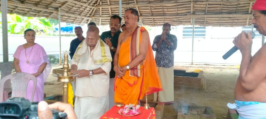பஞ்சபூத ஷப்த விம்ஷத்தி நட்சத்திர மஹா யாகத்திற்காக அமைக்கப்பட்ட யாகசாலை நேற்று அக்னி தேவனுக்கு சமர்ப்பிக்கப்பட்டது. இந்த நிகழ்ச்சியின் துவக்கமாக காலை கோயிலில் வழக்கமான பூஜைகள், கணபதி ஹோமம் நடந்தது. இதில் யாகசாலை நிறுவனர் பரிசுவைக்கல் கொச்சு பகவதி மடம் மடாதிபதி பிரம்ம ஸ்ரீ சுரேஷ் ஷர்மா போற்றி தலைமை வகித்தார். உடுப்பியை சார்ந்த கோயில் தந்தரி டாக்டர் நாராயண ராவ் முன்னிலை வகித்தார். கோயில் ஜோதிடர் சுகுமார்ஜி திருவிளக்கு ஏற்றி வைத்தார். தேவி சரோஜா அந்தர்ஜனம், கள்ளியங்காடு பிரதாபன், வக்கீல் செல்வகுமார், சினிமா சீரியல் தயாரிப்பாளர் சில்லி சாக்கோ, கோயில் நிர்வாக தலைவர் விக்கிரமன் சுவாமி, செயலாளர் சாந்தகுமார், பொருளாளர் சசி, மற்றும் நிர்வாகிகள், பக்தர்கள் கலந்து கொண்டனர்.