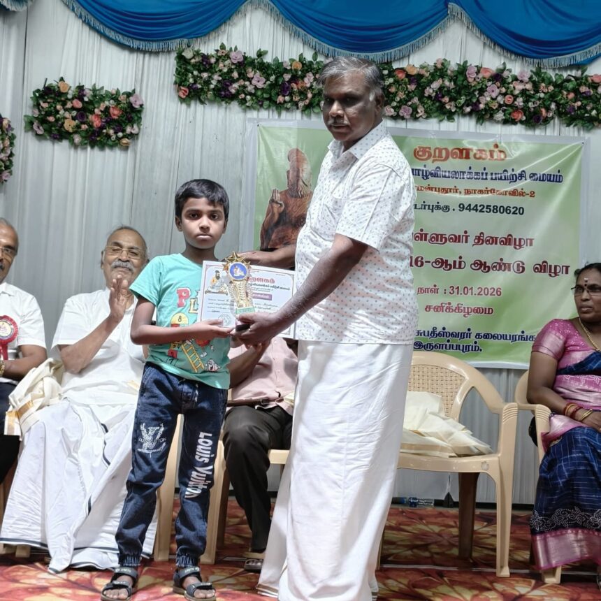 நாகர்கோவிலில் வைத்து கவிஞர் தமிழ்க்குழவியாரின் குறளகம் அமைப்பின் 16- வது ஆண்டு விழா, ஐம்பெரும் விழாவாக காலை தொடங்கி மாலை 7 மணி வரையிலும் நடைபெற்றது.
