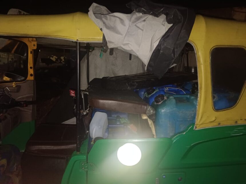 நித்திரவிளை அருகே பூத்துறை பகுதியில் இருந்து பயணிகள் ஆட்டோ ஒன்றில் படகுக்கு மானிய விலையில் வழங்கப்படும் மண்ணெண்ணெயை கடத்துவதாகக் கொல்லங்கோடு போலீசாருக்கு தகவல் கிடைத்தது. இதையடுத்து சம்பந்தப்பட்ட ஆட்டோவை நேற்று இரவு சுமார் பத்து மணி அளவில் மஞ்சத்தோப்பு பகுதியில் வைத்து நிறுத்த முயற்சித்தனர். ஆனால் ஆட்டோ நிற்காமல் வேகமாக சென்றது. உடனே போலீசார் ஆட்டோவை நீண்ட தூரம் துரத்தி சென்று இளம் பாலமுக்கு பகுதியில் பிடித்தனர். உடனே ஆட்டோவில் சோதனை செய்தபோது அதில் படகுக்கு மானிய விலையில் வழங்கப்படும் மண்ணெண்ணெய் 40 லிட்டர் கொள்ளளவு கொண்ட 15 கேள்களில் 600 லிட்டர் இருப்பது கண்டுபிடிக்கப்பட்டது. இதையடுத்து ஆட்டோ, மண்ணெண்ணெய் பறிமுதல் செய்யப்பட்டது. கேரள மாநிலம் விழிஞ்சம் பகுதி சேர்ந்த டிரைவர் டேனியல் மற்றும் டின்று ஆகிய இரண்டு பேரைப் பிடித்து கொல்லங்கோடு காவல் நிலையத்தில் ஒப்படைத்தனர். போலீசார் ஆட்டோ, மண்ணெண்ணெய், கைதான இரண்டு பேரையும் உணவு கடத்தல் தடுப்புப் பிரிவு போலீசாரிடம் ஒப்படைத்தனர்.