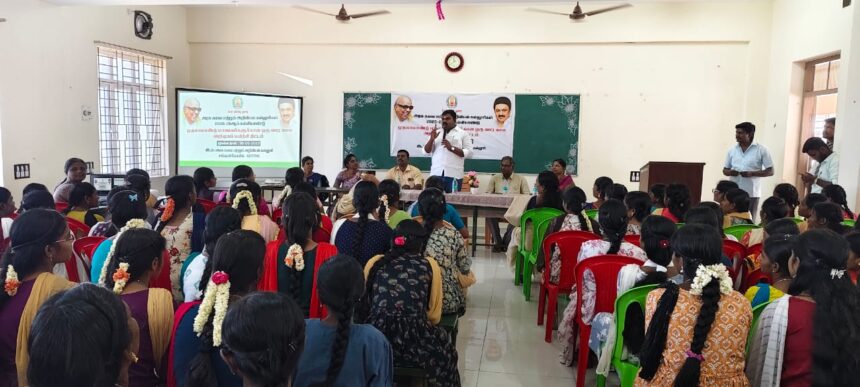 நம்மிடம் இருந்து பிரிக்க முடியாத செல்வம் கல்விதான். எனவே, மாணவ மாணவியர்கள் கல்வியில் சிறந்து விளங்க வேண்டும் என பல்வேறு திட்டங்கள் பற்றி மாணவ மாணவியர்களுக்கு எடுத்துக்கூறி கலந்துரையாடினார். நிகழ்ச்சிக்கு கல்லூரி முதல்வர் (பொ) முனைவர் வேணுகோபால் தலைமை தாங்கினார். கணினி அறிவியல் துறை தலைவர் இணை பேராசிரியர் முனைவர் செண்பகவல்லி வரவேற்றார்.