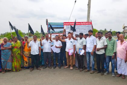திருப்பூர் கேட்டுத் தோட்ட மக்கள் கருப்புக் கொடி ஏந்தி போராட்டம்