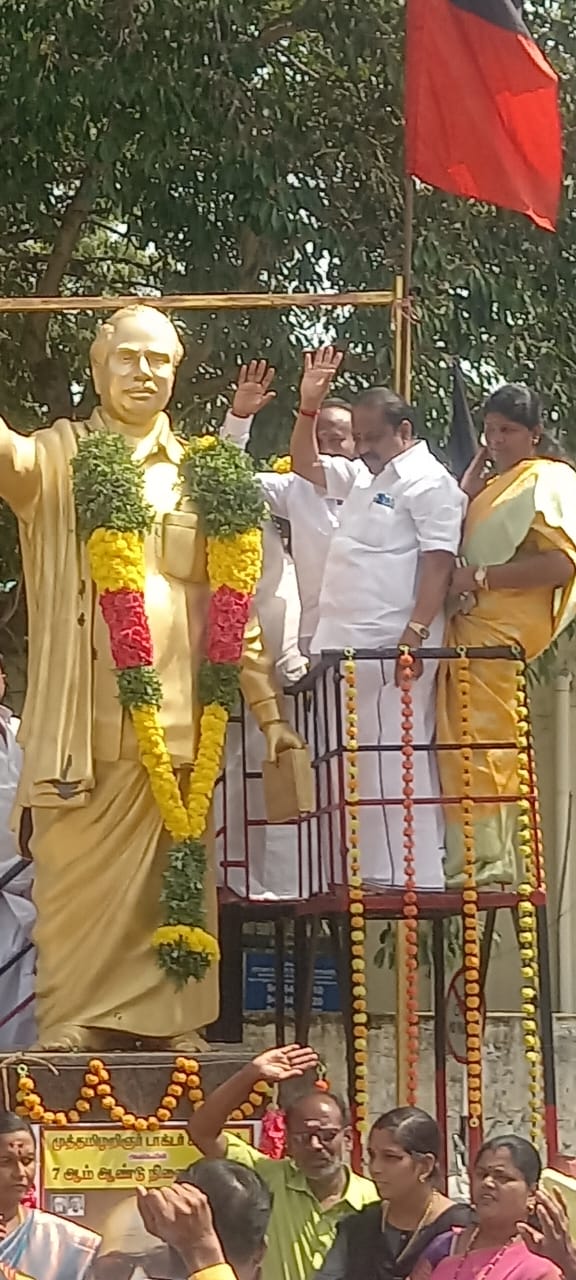 சிவகங்கையில் முன்னாள் முதல்வர் கலைஞர் கருணாநிதியின் 7- ம் ஆண்டு நினைவு தினம் அனுசரிக்கப்பட்டது. சிவகங்கை நகர் மன்றத் தலைவர் சி.எம். துரை ஆனந்த் தலைமையில் நடைபெற்ற இந்த நிகழ்வில் அலங்கரிக்கப்பட்ட அண்ணாவின் சிலைக்கு அவர் மாலையிட்டார். பின்பு கட்சிப் பொறுப்பாளர்களும், நகர் மன்ற உறுப்பினர்களும் மாலைகள் போட்டனர். அப்போது கூடியிருந்த தொண்டர்களும், நிர்வாகிகளும் கலைஞர் வாழ்க அறிஞர் அண்ணாவின் புகழ் ஓங்குக!! என்று தொடர்ந்து கோஷமிட்டனர் .