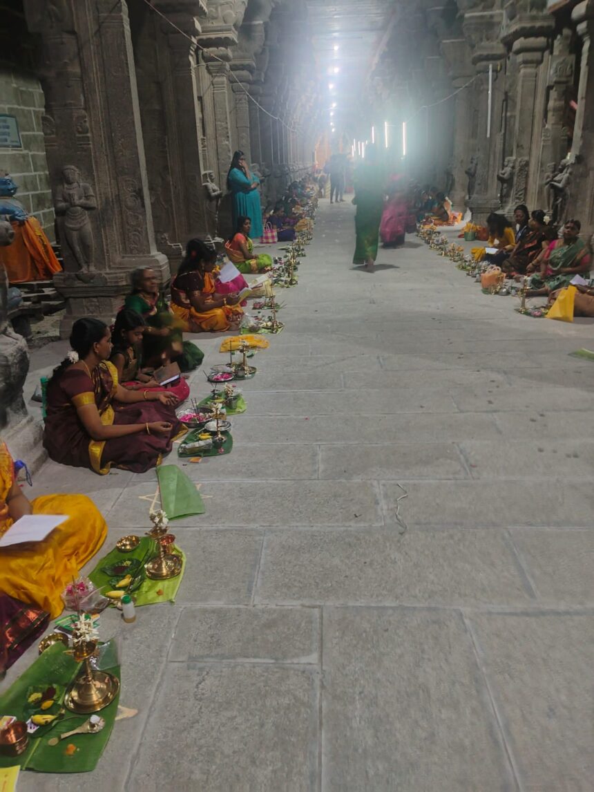 சுசீந்திரம் தாணுமாலய சுவாமி கோவிலில் மரபு படி வருடம் தோறும் ஆடி மாதம் கிருத்திகை நட்சத்திரத்தை ஒட்டி ஆடி கிருத்திகை வழிபாடு நடைபெறுவது வழக்கம். அதுபோல நேற்று ஆடி மாதம் கிருத்திகை நட்சத்திரம் என்பதால் நேற்று முன்தினம் மாலை 5.30 மணிக்கு கோவில் சுற்றியுள்ள கிராமங்களில் உள்ள பெண்கள் கோயில் உட்பிரகாரம் அமைந்துள்ள சாஸ்தா சன்னதி முன்பு வரிசையாக அமர்ந்து 1008 திருவிளக்குகள் வைத்து திருவிளக்குகளுக்கு சந்தனம் குங்குமம் இட்டு பூஜைகள் செய்தனர். பின்பு மந்திரங்கள், பக்தி பாடல்கள் பாடி திருவிளக்குகளுக்கு தீபாராதனை செய்து வழிபாடும் நிகழ்ச்சி நடைபெற்றது. இதில் உள்ளூர் மட்டுமின்றி அருகே உள்ள கிராம பெண்கள், ஆதிபராசக்தி மகளிர் மன்றத்தினர் கலந்து கொண்டனர்.