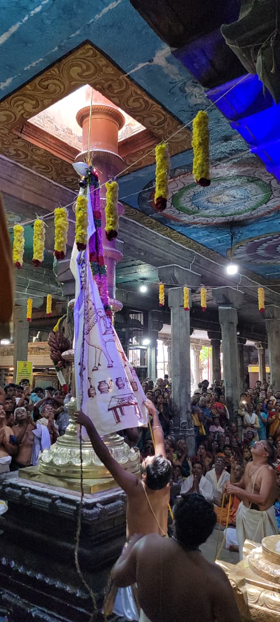 இதனை முன்னிட்டு நேற்று மாலை மரபுப்படி கோட்டார் இடலாக்குடி ருத்ரபதி விநாயகர் கோவிலில் இருந்து பட்டாரியார் சமுதாயத்தினர் கொடி பட்டத்தை மேளதாளங்கள் முழங்க ரத வீதியை சுற்றி கோவில் நிர்வாகத்திடம் கொடுத்தனர். இன்று காலை 6 மணிக்கு திருமுறை பாராயணமும் பதினோரு மணி அளவில் கொடிமர பூஜைகள் வட்ட பள்ளி மடம் டாக்டர் சர்மா செய்திருந்தார். தெற்குமண்திலிப் நம்பூதிரி திருகொடி ஏற்றினார். பின்பு மூலவருக்கு அபிஷேகம் நடைபெற்றது.