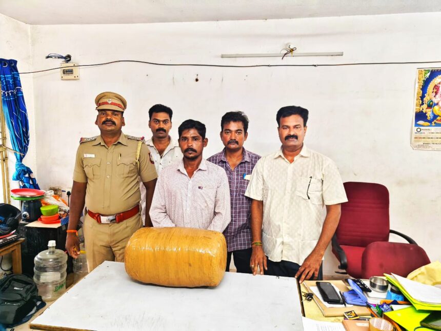 ஆவடி காவல் ஆணையரகத்தில் போதைப் பொருள் இல்லா தமிழகம் என்ற கோட்பாட்டை வலியுறுத்தி ஆவடி காவல் ஆணையர் சங்கர் உத்தரவுபடி காவல் கூடுதல் ஆணையர், ஆவடி காவல் ஆணையரகம் ஆகியோர் அறிவுரையின் பேரில் அம்பத்தூர் மதுவிலக்கு அமல் பிரிவு உதவி ஆணையர் வழிகாட்டுதலின் படி செங்குன்றம் மதுவிலக்கு அமல் பிரிவு காவல் ஆய்வாளர் சசிகுமார் தலைமையில் தனிப்படை போலீசார் செங்குன்றம் மதுவிலக்கு அமல் பிரிவு எல்லைக்குட்பட்ட மீஞ்சூர், செங்குன்றம், மணலி, அத்திப்பட்டி, எண்ணூர் ஆகிய பகுதிகளில் கஞ்சா எனும் போதைபொருள் விற்பனை செய்யபடுவதை தடுப்பதற்காக தீவிர சோதனையில் மொண்டியம்மன் சோதனை சாவடி அருகே வாகனத் தணிக்கையில் ஈடுபட்டிருந்த போது சந்தேகப்படும்படியாக இருந்த நபர் ரவிந்தர் என்பவர் வைத்திருத்த ஷால்Lர் பையை சோதனை செய்து பார்த்த போது அவரிடம் இருந்து சுமார் 10.500 கிலோ எடை கொண்ட காஞ்சாவை கைப்பற்றி மேற்படி நபர் மீது செங்குன்றம் மதுவிலக்கு அமல்பிரிவு காவல் நிலைய போலீசாரால் குற்ற வழக்குபதிவு செய்து எதிரியை குற்றவியல் நடுவர்-2 நீதிமன்றம் பொன்னேரி நீதிமன்றத்தில் ஆஜர்படுத்தி மேற்படி எதிரி புழல் மத்திய சிறையில் அடைக்கப்பட்டார்.