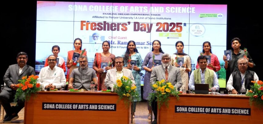 சேலம் சோனா கலை மற்றும் அறிவியல் கல்லூரியின் முதலாம் ஆண்டு மாணவர்களை வரவேற்கும் விதமாக 10.07.2025 வியாழக்கிழமை அன்று கல்லூரியின் ஸ்ரீ வள்ளியப்பா கலையரங்க கூடத்தில் நடைபெற்றது. கல்லூரியின் முதலாம் ஆண்டு மாணவர்களை வரவேற்கும் விதமாக நடைபெற்ற இந்த விழாவிற்கு கல்லூரியின் தலைவர் திரு. சி. வள்ளியப்பா அவர்கள் தலைமை வகித்தார். கல்லூரியின் துணைத் தலைவர்கள் திரு. சொக்கு வள்ளியப்பா, திரு. தியாகு வள்ளியப்பா ஆகியோர் முன்னிலை வகித்தனர். கல்லூரியின் முதல்வர் முனைவர் கு. மை காதர் நவாஸ் அவர்கள் மாணவர்கள் மற்றும் பெற்றோர்களை வரவேற்று பேசினார்.