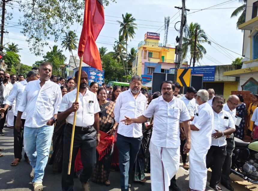 முன்னாள் முதலமைச்சர் கருணாநிதி நினைவு தினத்தை ஒட்டி குமரி மேற்கு மாவட்ட திமுக சார்பில் மௌன ஊர்வலம் மற்றும் புகழஞ்சலி நிகழ்ச்சி தக்கலையில் நடந்தது. நிகழ்ச்சிக்கு கட்சியின் மாவட்ட செயலாளரும், அமைச்சருமான மனோ தங்கராஜ் தலைமை வகித்தார். மணலி சந்திப்பில் இருந்து மௌன ஊர்வலம் தொடங்கி, மேட்டுக்கடை வழியாக நிகழ்ச்சி நடைபெறும் இடத்தை அடைந்தது. தொடர்ந்து அலங்கரிக்கப்பட்ட மேடையில் அமைக்கப்பட்ட கருணாநிதியின் உருவப்படத்திற்கு அமைச்சர் மனோ தங்கராஜ் மலர் அஞ்சலி செலுத்தினார். இந்த நிகழ்ச்சியில் கட்சியினர் மற்றும் பலர் கலந்து கொண்டனர்.