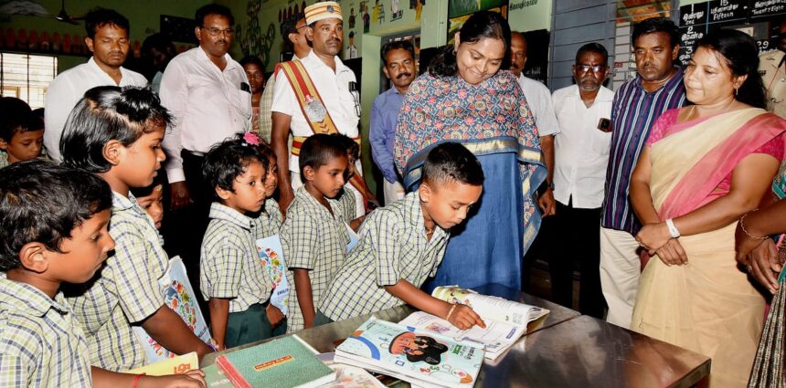 தஞ்சாவூர் அருகே ஆம்பலாபட்டு வடக்கு இலுப்பை தோப்பு அரசு தொடக்கப்பள்ளியில் கற்றல் திறன் குறித்து மாவட்ட கலெக்டர் பிரியங்கா பங்கஜம் நேரில் பார்வையிட்டு ஆய்வு செய்தார். அப்போது மாணவ மாணவிகளின் எண்ணிக்கை, வருகை குறித்தும், தினசரி பள்ளி வருகைகளை உறுதிப்படுத்த ஆசிரியர்களுக்கு அறிவுறுத்தினார். மேலும் தமிழக அரசால் அறிமுகப்படுத்தப்பட்ட மொட்டு, அரும்பு படி நிலைக்கேற்ப மாணவ மாணவிகளின் வாசிப்பு திறன் குறித்தும், அடிப்படை கணக்குகள் மேற்கொள்வது குறித்தும் விரிவாக ஆய்வு மேற்கொண்டார்.