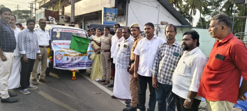 களியக்காவிளையில் துவங்கிய விழிப்புணர்வு ஆம்புலன்ஸ் பேரணி படந்தாலுமூடு, திருத்துவபுரம், குழித்துறை வழியாக மார்த்தாண்டம் புதிய பேருந்து நிலையம் அருகில் நிறைவடைந்தது.