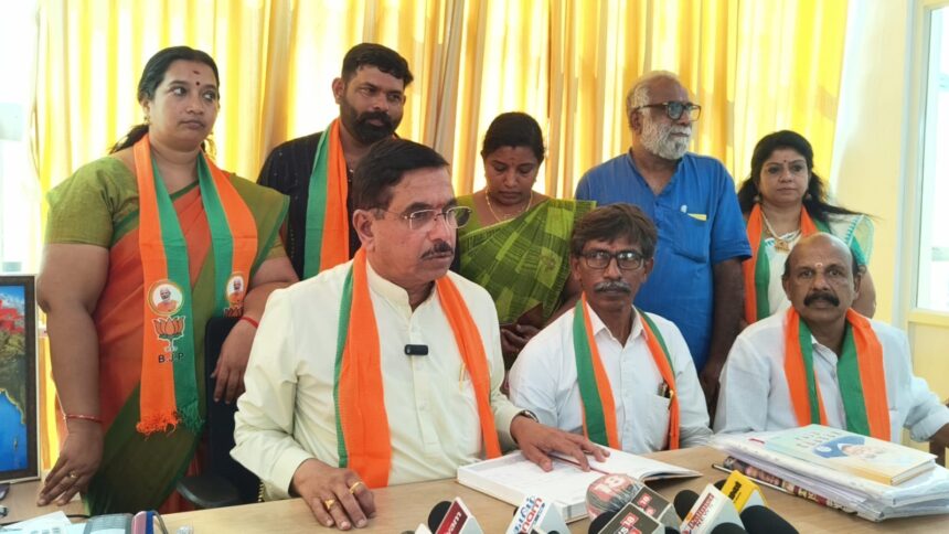 விளவங்கோடு சட்டமன்ற தொகுதி பாஜக வேட்பாளர் விஜயதரணி ஆதரவாகவும், நாளை பிரதமர் நரேந்திர மோடி நாகர்கோவிலில் கூட்டணி வேட்பாளர்களுக்கு ஆதரவு கேட்டு பிரமாண்ட ரோட் ஷோ நடத்த உள்ள நிலையில் குமரி மாவட்டத்தில் வந்துள்ள மத்திய அமைச்சர் பிரஹ்லாத் ஜோஷி குழித்துறையில் பாஜக மாவட்ட அலுவலகத்தில் கட்சி நிர்வாகிகளை சந்தித்து பேட்டியளித்தார்.