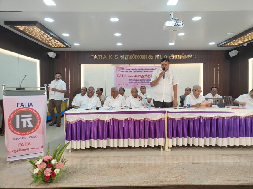கூட்டத்தில் நிறைவேற்றப்பட்ட தீர்மானங்கள் வருமாறு: ஜவுளி துறைக்கு ஜிஎஸ்டி வரி விதிப்பை 5 சதவீதத்தில் இருந்து 3 சதவீதமாக குறைக்க வேண்டும். புதிய தொழில் உரிமம் வரி விதிப்பை நீக்க வேண்டும். உணவு வகைகளுக்கும் தானிய வகைகளுக்கும் விதைகளுக்கும் ஜிஎஸ்டி வரியை நீக்க வேண்டும். தொழில் வணிக நிறுவனங்கள் வீடுகளுக்கு மின் கட்டண உயர்வை ரத்து செய்ய வேண்டும்.