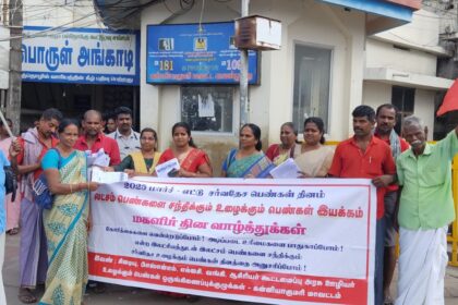அனைத்து விவசாய கடன்களையும் ரத்து செய்ய வேண்டும், நாற்கர சாலை திட்டத்தாலும் & இரட்டை ரயில்பாதை திட்டத்தாலும் பாதிக்கப்படும் நீர்நிலைகளை ஆய்வுசெய்து அறிக்கை வழங்குமாறு 6 மாதமாக தொடர்ந்து குமரி மாவட்ட ஆட்சித் தலைவர் உத்தரவிட்ட பிறகும் இதுவரை அறிக்கை வழங்காத நீர்வளத்துறை அதிகாரிகளை கண்டித்தும், பாதிக்கப்படும் விவசாய நிலங்கள் பற்றி ஆய்வறிக்கை வழங்காத வேளாண்மைத்துறை அதிகாரிகளை கண்டித்தும், உள்ளிட்ட நூற்றுக்கணக்கான கோரிக்கைகளை நிறைவேற்றக்கோரி
