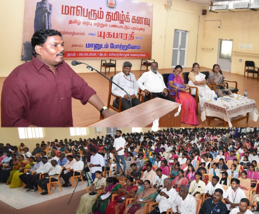 தஞ்சாவூரில் தமிழ் பல்கலைக் கழகத்தில் தமிழ் இணைய கல்வி கழகம், உயர்கல்வி துறை சார்பில் நடைபெற்ற மாபெரும் தமிழ் கனவு என்கின்ற பண்பாட்டு பரப்புரை நிகழ்ச்சி நடைபெற்றது. அதில் கவிஞர் யுக பாரதி கலந்து கொண்டு பேசினார்.