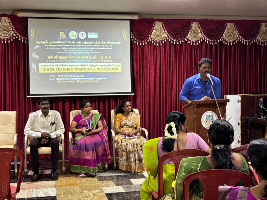 தமிழ்நாடு தொழில் முனைவோர் மேம்பாடு மற்றும் புத்தாக்க நிறுவனம் சார்பில் பள்ளி ஆசிரியர்களுக்கு புத்தாக்க மேம்பாட்டு பயிற்சி முகாம்