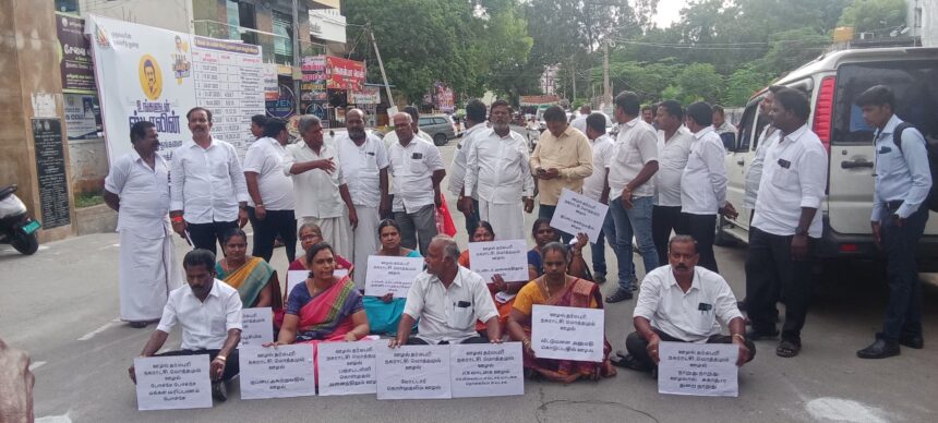 தருமபுரி நகராட்சியில் நடைபெறும் முறைகேடுகளை கண்டித்து அதிமுக கவுன்சிலர்கள் தர்ணா போராட்டம்சேகர் வரவேற்றார். துணைத்தலைவர் நித்தியா முன்னிலை வகித்தார். கூட்டத்தில் திமுக, அதிமுக, விசிக கவுன்சிலர்கள் கலந்து கொண்டனர். மாலை 4:35 மணிக்கு கூட்டம் நடைபெறுவதாக அறிவிக்கப்பட்டது. அதன்படி மாலை 4:38 மணிக்கு கூட்டம் தொடங்கியது. திருக்குறள் படிக்கப்பட்டது. மன்றத்தில் 52 பொருட்கள் தீர்மானங்களாக வைக்கப்பட்டன. இதில் 35 பொருட்களின் தீர்மானத்தை ரத்து செய்யும்படி அதிமுக கவுன்சிலர்கள் 13 பேர் கையெழுத்திட்டு ஆணையரிடம் மனு அளித்தனர்.