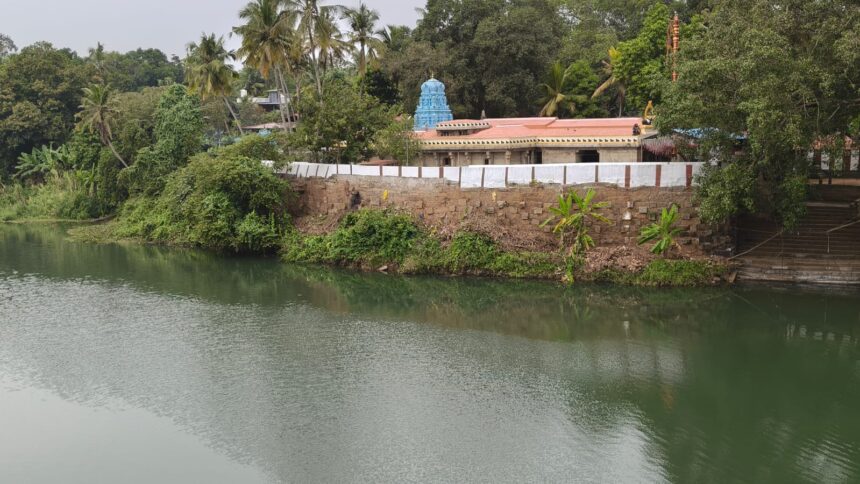 அந்த நேரத்தில் பக்தர்கள் முயற்சியால் அந்த பகுதியில் பெரிய கற்கள் கொட்டபட்டது. அந்த கற்களும் ஆற்று நீர் இழுத்து சென்றதால் சுற்று சுவர் எப்போது வேண்டுமானாலும் இடிந்து விழும் அபாயகரமான சூழல் ஏற்பட்டது. தொடர்ந்து, பக்தர்கள் மற்றும் இந்து இயக்கங்கள் பல வித கோரிக்கை விடுத்த நிலையில் கடந்த 3 ஆண்டுகளுக்கு முன்பு இந்து அறநிலையத்துறை அமைச்சர் சேகர் பாபு, இந்து அறநிலையத்துறை செயலாளர், மாவட்ட ஆட்சியர், அமைச்சர் மனோதங்கராஜ் உட்பட அதிகாரிகள் கோயிலில் நேரடியாக ஆய்வு செய்தனர்.