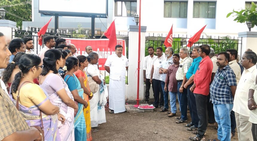 திண்டுக்கல்லில் அகில இந்திய இன்சூரன்ஸ் ஊழியர் சங்கத்தின் பவள விழா முன்னிட்டு கொடியேற்று விழா நடைபெற்றது. அகில இந்திய இன்சூரன்ஸ் ஊழியர் சங்கம் சார்பில் பவள விழாவை முன்னிட்டு கொடியேற்று விழா பழனி ரோடு எல்ஐசி அலுவலகம் முன்பு நடைபெற்றது. நிகழ்ச்சிக்கு காப்பீட்டு ஊழியர் சங்க மதுரை கோட்ட சங்கத் துணைத் தலைவர் வாஞ்சிநாதன் தலைமை வகித்தார். அரசு ஊழியர் சங்க மாவட்ட தலைவர் முபாரக் அலி முன்னிலை வகித்தார். சிறப்பு விருந்தினராக கலந்து கொண்ட திண்டுக்கல் பாராளுமன்ற உறுப்பினர் சச்சிதானந்தம் சங்க கொடியை ஏற்றி வைத்து வாழ்த்துரை வழங்கினார். கிளை-1 தலைவர் பாரத் உறுதிமொழியை வாசித்தார். பின்னர் அனைவருக்கும் இனிப்புகள் வழங்கினர். நிகழ்ச்சியில் வளர்ச்சி அதிகாரிகள், முதல்நிலை அதிகாரிகள் மற்றும் பணியாளர்கள் ஏராளமானவர்கள் கலந்து கொண்டு உறுதிமொழி ஏற்றனர். கிளை-2 தலைவர் தங்கவேலு நன்றி கூறினார்.