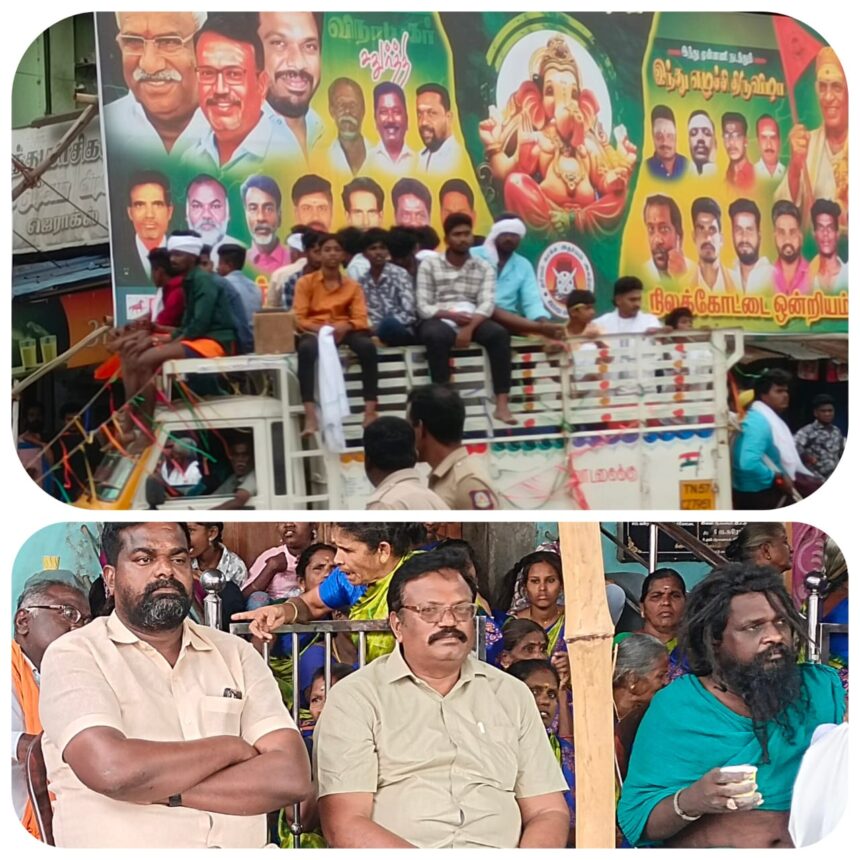 திண்டுக்கல் மாவட்ட நிலக்கோட்டையில் விநாயகர் சதுர்த்தி முன்னிட்டு இந்து முன்னணி சார்பில் விநாயகர் ஊர்வலம் நடைபெற்றது இதில் தலைவர் மதிப்புக்குரிய மதுரை கோட்ட செயலாளர் ஜெயக்குமார் அண்ணன் தலைமையில் நடைபெற்றது. அதில் சிறப்பு அழைப்பாளராக அண்ணன் ஐயப்பன் பி ஏ பில் மற்றும் இந்து முன்னணி பக்தர்களும் கலந்து கொண்டு ஊர்வலத்தில் ஆடி படி விநாயகர் ஊர்வலமாக எடுத்துச் சென்றனர்.
