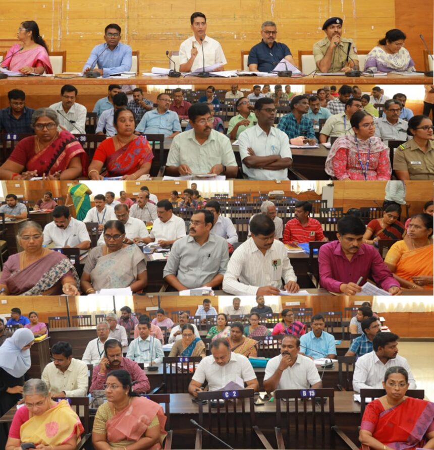 திருப்பூர் மாவட்ட ஆட்சியர் அலுவலக கூட்டரங்கில் அனைத்து துறைகளில் நடைபெற்று வரும் வளர்ச்சி திட்டப்பணிகள் குறித்து ஆய்வுக்கூட்டம் நடைபெற்றது. ஆய்வுக் கூட்டத்தில் மாவட்ட ஆட்சித்தலைவர் டாக்டர் மனிஷ் நாரணவரே தெரிவித்தாவது: தமிழ்நாடு முதலமைச்சர் அனைத்துத்துறைகளின் சார்பில் பல்வேறு திட்டங்களை அறிவித்து சிறப்பாக செயல்படுத்தி வருகிறார்கள். தொலைநோக்குத் திட்டங்களாக அறிவிக்கப்பட்டுள்ள திட்டங்கள் குறித்தும், செயல்படுத்தப்பட்டுள்ள திட்டங்களின் நிலைகள் குறித்தும் அனைத்துத்துறைகளில் நடைபெற்று வரும் திட்டப்பணிகள் குறித்து துறை சார்ந்த அலுவலர்களுடான ஆய்வுக்கூட்டங்கள்.