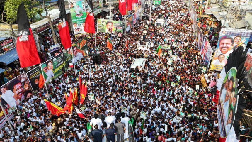 தமிழகம் முழுவதும் மக்களை காப்போம் தமிழகத்தை மீட்போம் என்று எடப்பாடி கே பழனிச்சாமி சுற்று பயணம் மேற்கொண்டு மக்களை சந்தித்து உற்சாகமாக உரை நிகழ்த்தி வருகிறார்.