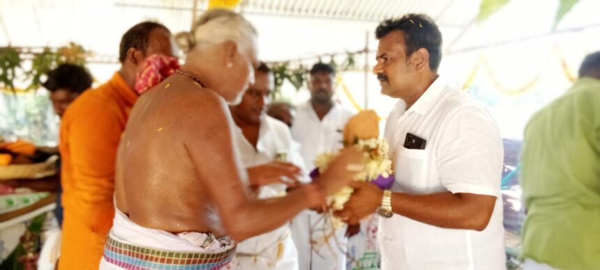 திருவெண்ணெய்நல்லூர் அருகே கும்பாபிஷேக விழாவில் இளம் தொழிலதிபருக்கு கலசம் வழங்கி கௌரவிப்பு. விழுப்புரம் மாவட்டம் திருவெண்ணெய்நல்லூர் அருகே டி.எடையார் கிராமம். இந்த கிராமத்தில் பிரசித்தி பெற்ற ஸ்ரீமாணிக்க விநாயகர், ஸ்ரீபாலமுருகன் கோயில் உள்ளது. இந்த கோயிலின் மகா கும்பாபிஷேகம் நேற்று வெகு விமர்சையாக நடைபெற்றது.