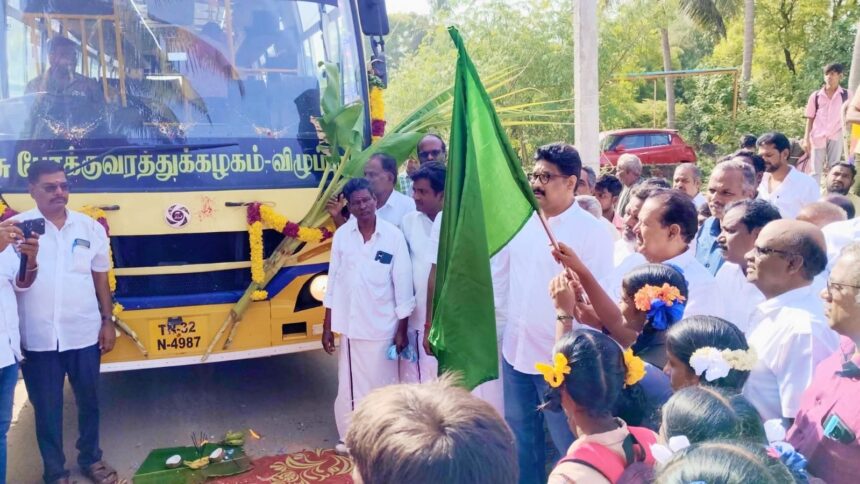 பின்னர் பஸ்ஸில் பள்ளி மாணவர்களுடன் அமர்ந்து சிறிது தூரம் பயணம் செய்து மாணவர்கள் மற்றும் பொதுமக்களை உற்சாகப்படுத்தினார். இதில் முன்னாள் நாடாளுமன்ற உறுப்பினர் பொன். கௌதம சிகாமணி, மாவட்ட கவுன்சிலர் பி.வி.ஆர். விசுவநாதன் ஒன்றிய சேர்மன் ஓம்சிவசக்திவேல், நகர செயலாளர் பூக்கடை கணேசன், மாவட்ட இளைஞரணி அமைப்பாளர் தினகரன், ஒன்றிய இளைஞரணி அமைப்பாளர் நிர்மல்ராஜ், தொ.மு.ச பொதுச் செயலாளர் சேகர், தொ.மு.ச நிர்வாக பணியாளர் சங்க பொதுச் செயலாளர் வாலிபால் மணி மற்றும் கிருஷ்ணமூர்த்தி, மோகன், சுதா சீனுவாசன், ஏழுமலை, கிருஷ்ணராஜ், வெங்கடேசன் உள்ளிட்ட பலர் கலந்து கொண்டனர்.