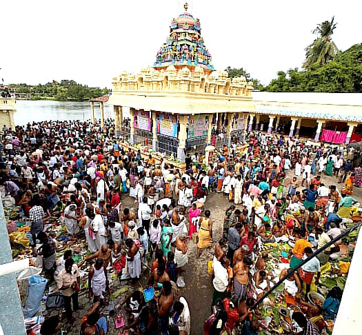 தஞ்சாவூர் மாவட்டம் திருவையாறு காவிரி கரையில் ஆயிரக்கணக்கான பக்தர்கள் திரண்டு ஆடி அமாவாசையொட்டி புனித நீராடினர். ஆடி அமாவாசையொட்டி திருவையாறு காவிரி புஷ்ய மண்டப படித்துறையில் முன்னோர்களுக்கு தர்ப்பணம் கொடுப்பதற்காக பல்வேறு பகுதியில் இருந்து ஆயிரக்கணக்கான பக்தர்கள் திரண்டு காவிரியில் புனித நீராடினர். மேலும் முன்னோர்களுக்கு தர்ப்பணம் கொடுத்துவிட்டு ஐயாரப்பர் கோவிலுக்கு சென்று வழிபட்டனர்.