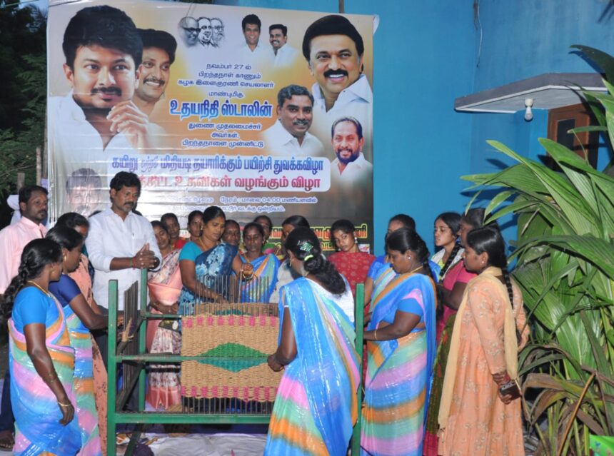 அதன் ஒரு பகுதியாக திருவாரூர் மாவட்ட திமுக செயலாளரும், திருவாரூர் சட்டமன்ற உறுப்பினருமான பூண்டி கலைவாணன் அறுவுறுத்தலின்படி, திருத்துறைப்பூண்டி சட்டமன்ற தொகுதி, கோட்டூர் ஒன்றியத்திற்குட்பட்ட மேல பனையூர் கிராமத்தில் மாவட்ட இளைஞரணி துணை அமைப்பாளர் திருத்துறைப்பூண்டி எடிசன் ஏற்பாட்டில் கோட்டூர் ஒன்றிய செயலாளர் பால ஞானவேல் தலைமையில், மகளிருக்கு கயிறு மற்றும் மிதியடி தயாரிக்கும் 2 மாத பயிற்சி வகுப்பு இன்றைய தினம் துவங்கப்பட்டது.