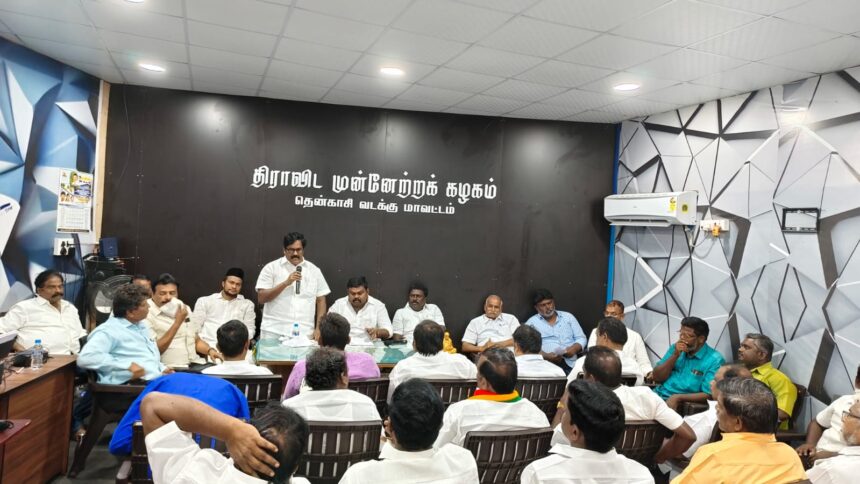 சங்கரன்கோவிலில் தென்காசி வடக்கு மாவட்ட இந்தியா கூட்டணி ஆலோசனைக் கூட்டம் நடைபெற்றது. இக்கூட்டம் வடக்கு திமுக மாவட்டச் செயலாளர் ராஜா எம்எல்ஏ தலைமையில் நடைபெற்றது. சிறப்பு அழைப்பாளராக மதிமுக மாநில துணைச் செயலாளர் திமு ராஜேந்திரன் கலந்து கொண்டு பேசினார். இந்தியா கூட்டணி சார்பில் 2026 சட்டமன்றத் தேர்தலை முன்னிட்டு வாக்காளர் பட்டியல்கள் சரிபார்ப்பு மற்றும் கூட்டணி கட்சிகளுடன் இணைந்து தேர்தல் பணிகள் ஆலோசனைக் கூட்டங்கள் நடத்திடவும் மேலும் மாநில மாவட்ட ஒன்றிய நகர கிளை வார்டு கழக நிர்வாகிகள் ஒன்றிணைந்து ஆலோசனைக் கூட்டங்கள் நடத்திடவும் திராவிட மாடல் அரசின் நலத்திட்டங்களை மக்களிடம் கொண்டு செல்லவும் அனைவரும் ஒன்றிணைந்து 2026 சட்டமன்ற தேர்தலில் தென்காசி வடக்கு மாவட்டம் வாசுதேவநல்லூர் சங்கரன்கோவில் தொகுதியில் இந்தியா கூட்டணி மாபெரும் வெற்றி அடைய கூட்டணி கட்சி பொறுப்பாளர்கள் உறுப்பினர்களுடன் இணைந்து உழைக்க வேண்டுமென ஆலோசனைகள் வழங்கப்பட்டது. கூட்டத்தில் செயற்குழு உறுப்பினர் யு.எஸ்.டி.சீனிவாசன், மருத்துவரணி துணைச் செயலாளர் செண்பக விநாயகம், தொகுதி பொறுப்பாளர்கள் ராம ஜெயம், முன்னாள் எம்பி தனுஷ் எம்.குமார், மாவட்ட அவைத் தலைவர் சுப்பையா, மாவட்டப் பொருளாளர் சரவணன், மாவட்டத் துணைச் செயலாளர்கள் புனிதா, ராஜதுரை, மார்க்சிஸ்ட் கட்சி மாவட்டச் செயலாளர் உச்சி மாகாளி, இந்திய கம்யூனிஸ்ட் கட்சி மாவட்டச் செயலாளர் இசக்கி துரை, இந்திய யூனியன் முஸ்லிம் லீக் மாவட்டத் தலைவர் செய்யது பட்டாணி, விடுதலை சிறுத்தைகள் மாவட்டச் செயலாளர் லிங்க வளவன் ஜான் தாமஸ், மனிதநேய மக்கள் கட்சி மாவட்ட செயலாளர் அப்துல் ரகுமான், அகில இந்திய பார்வர்டு பிளாக் சுப்பிரமணியன், தமிழ் புலிகள் கட்சி சந்திரசேகர், ஆதி தமிழர் பேரவை மதன்குமார், தமிழக வாழ்வுரிமைக் கட்சி முகைதீன், திராவிட தமிழர் கட்சி மகாலிங்கம், தமிழர் ஆட்சிக் கழகம் கருப்பசாமி, பாண்டியன் யூனியன் சேர்மன் லாலா சங்கர பாண்டியன், நகரச் செயலாளர் பிரகாஷ், புளியங்குடி அந்தோணிசாமி நாகூர் உள்பட இந்தியா கூட்டணிக் கட்சிகளின் பொறுப்பாளர்கள், உறுப்பினர்கள் ஏராளமானோர் கலந்து கொண்டனர்.