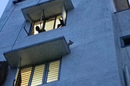 3-வது மாடியில் சிக்கித் தவித்த குட்டி நாய்