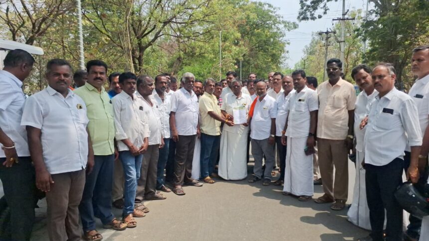 தருமபுரி மாவட்டத்தில் போக்குவரத்து பணிமனைகள் தருமபுரி, கிருஷ்ணகிரியை உள்ளடக்கி சுமார் 10க்கும் மேற்பட்ட பணிமனைகள் உள்ளது. மேலும் பேருந்து நிலையங்களில் நேரம் காப்பாளர் அறைகள் உள்ளிட்ட பகுதிகளில் திமுகவை சேர்ந்த தொழிற்சங்கத்தை சேர்ந்த நிர்வாகிகள் பலர் தேர்தல் அறிவிக்கப்பட்ட பின்பும் பணிக்கு செல்லாமல் பணிமனைகளிலும் நேரம் காப்பாளர் அறைகளிலும் திமுகவினர் அமர்ந்து உள்ளதாக அதிமுக, பாஜக, பாமக, அமமுக உள்ளிட்ட தொழிற்சங்கங்களை சேர்ந்த 100க்கும் மேற்பட்ட நிர்வாகிகள் மாவட்ட ஆட்சியரிடம் மனு அளித்தனர். தேர்தல் நடத்தை விதிமுறைகள் காரணம் காட்டி ஆட்சியர் அலுவலகம் எதிரே உள்ள புகார் பெட்டியில் மனுவை போட்டு சென்றனர்.