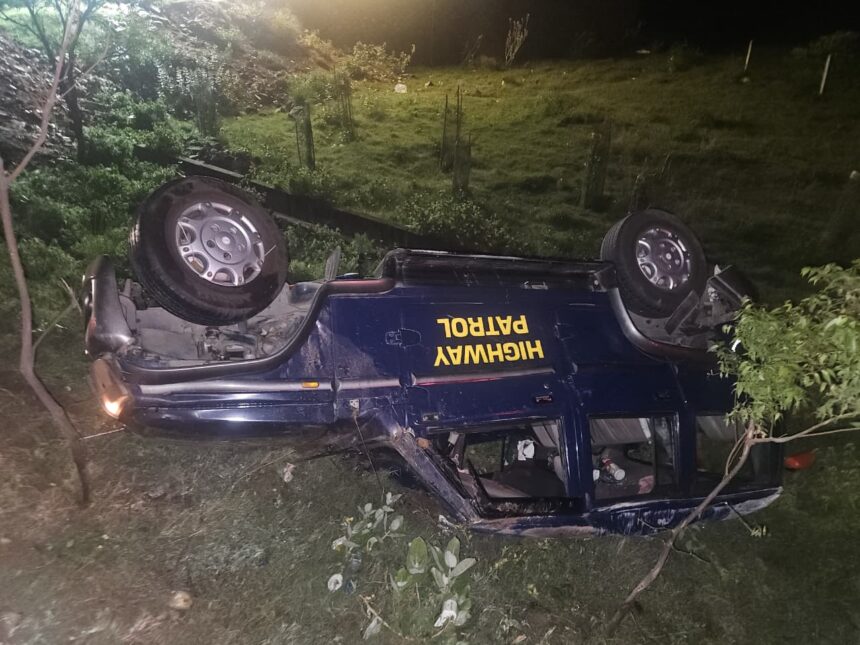 அந்த சமயத்தில் அதே ரோட்டில் குளச்சலில் இருந்து திருநெல்வேலி நோக்கி சென்ற கார் வேகமாக சென்று போலீஸ் ரோந்து வாகனத்தின் பின்னால் மோதியது. இதில் போலீஸ் ரோந்து வாகனம் தூக்கி வீசப்பட்டு ரோட்டோரத்தில் இருந்த பள்ளத்தில் தலைக் குப்புற கவிழ்ந்தது.