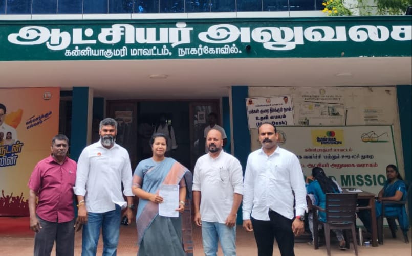 கன்னியாகுமரி மணக்குடி ஊராட்சியிலுள்ள இராட்சத நீர் குழாய்கள் கொண்டு செல்லும் பாலம் பழுதடைந்து உடைந்து விடும் நிலையில் உள்ளது. பாலம் முழுவதுமாக உடையுமாயின் அப்பகுதியில் நிறுத்தி வைக்கப்பட்டுள்ள மீன்பிடி வள்ளங்கள் கடலுக்குள் செல்ல முடியாமல் தவிக்கும் சூழல் ஏற்பட்டுள்ளது. அந்தப் பாலத்தில் ஏற்பட்டுள்ள உடைப்பை இன்று கள ஆய்வு செய்து அதற்கு நிரந்தரமான ஒரு தீர்வை விரைவில் எட்டி அப்பகுதி மீனவர்களுக்கு எந்த வாழ்வாதார சிக்கல்களும் ஏற்படாத வண்ணம் உடனடியாக நடவடிக்கை எடுக்க வேண்டி மாவட்ட ஆட்சியரிடம் நாம் தமிழர் கட்சி சார்பாக மரிய ஜெனிபர் மனு அளித்துள்ளார்.