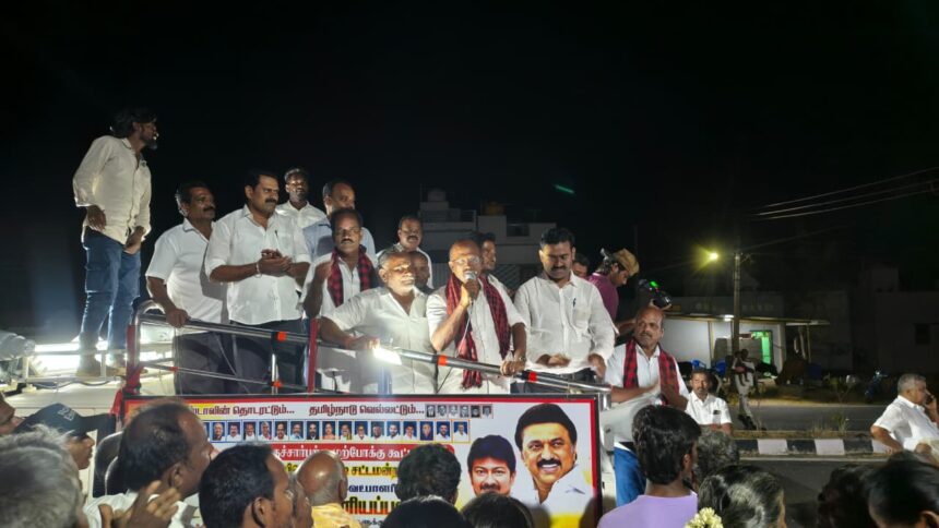 அப்போது அவர் பேசுகையில்: திமுக அரசின் 5 ஆண்டு ஆட்சியில் பல்வேறு திட்டங்கள் நிறைவேற்றப்பட்டுள்ளது. விவசாயிகளின் நலனை கருத்தில் கொண்டு நெல் கொள்முதல் குவிண் டாலுக்கு விலை ரூ. 3,500, கரும்பு டன் ரூ.4,000 வழங்கப்படும், பால் கொள்முதல் விலை ஐந்து உயர்த்தி தரப்படும், மீட்டர் பொருத்தாமல் நவீன மின்சார பம்பு செட்டுகள் வழங்கப்படும் என்றார். இந்த பிரச்சாரத்தின் போது ஒன்றிய செயலாளர் பிரபு ராஜசேகர், வெற்றி உள்ளிட்ட கூட்டணி கட்சிகளில் நிர்வாகிகள், பொதுமக்கள் கலந்து கொண்டனர்.